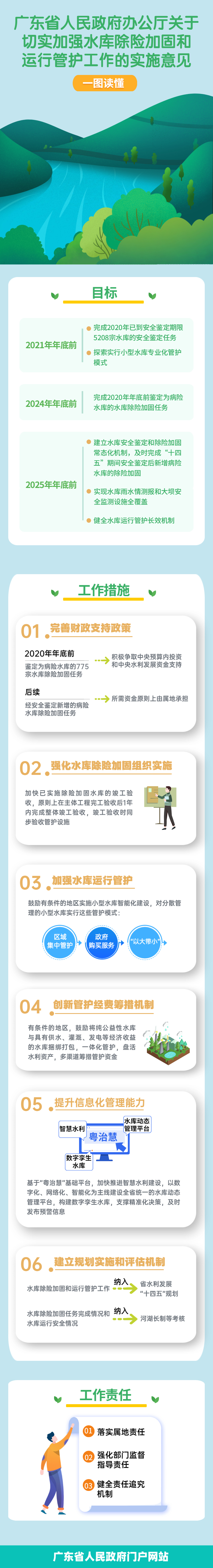 一图读懂广东省人民政府办公厅关于切实加强水库除险加固和运行管护工作的实施意见
