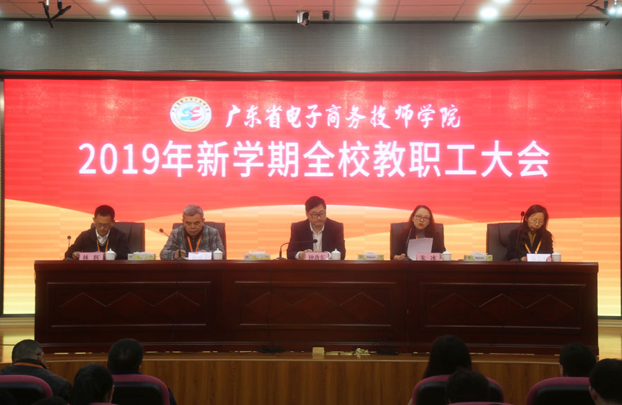 新时代,新作为;新学期,新气象。2月22日上午,省电商学校在综合楼一楼报告厅召开2019年度新学期全校教职工大会,学校全体教职员工参加大会。大会由副校长朱冰主持。
