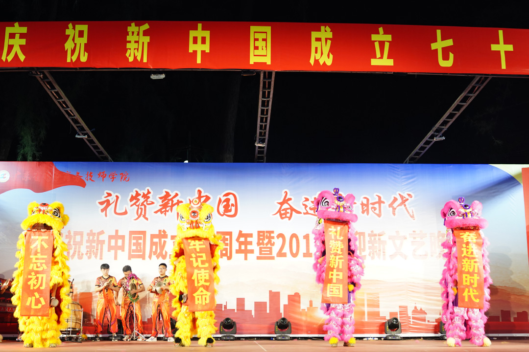 晚会在极富广东文化特色的舞狮表演“龙腾虎跃庆国庆”中拉开帷幕。接下来歌唱、舞蹈、武术、朗诵、花样跳绳、茶艺、T台秀等精彩节目轮番登场,充分展示了我校师生的多才多艺。夜晚中绚丽的舞台灯光如梦似幻,与月色交相辉映、唯美动人。最后的歌舞表演“我和我的祖国”气势磅礴、情感充沛,将晚会的气氛推向了最高潮,也为晚会画下了一个圆满的句号。整场晚会精彩纷呈,令人目不暇接,为喜迎国庆奉献了一场喜庆、祥和、欢乐、精彩的视听盛宴。