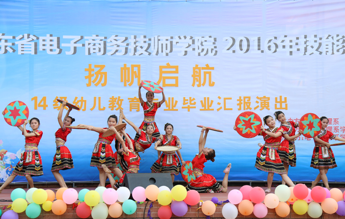 4月27日下午,省电子商务技师学院2014级幼儿教育专业学生毕业汇报演出在学校小舞台隆重举行。学院潘朝阳院长、朱冰副院长、施志君副院长、经管系曾思燕主任、刘秋玲主任以及深圳特雷新国际幼教集团黄至富总经理、经济管理系的全体师生观看了此次汇演。施志君副院长和曾思燕主任分别为演出致辞。