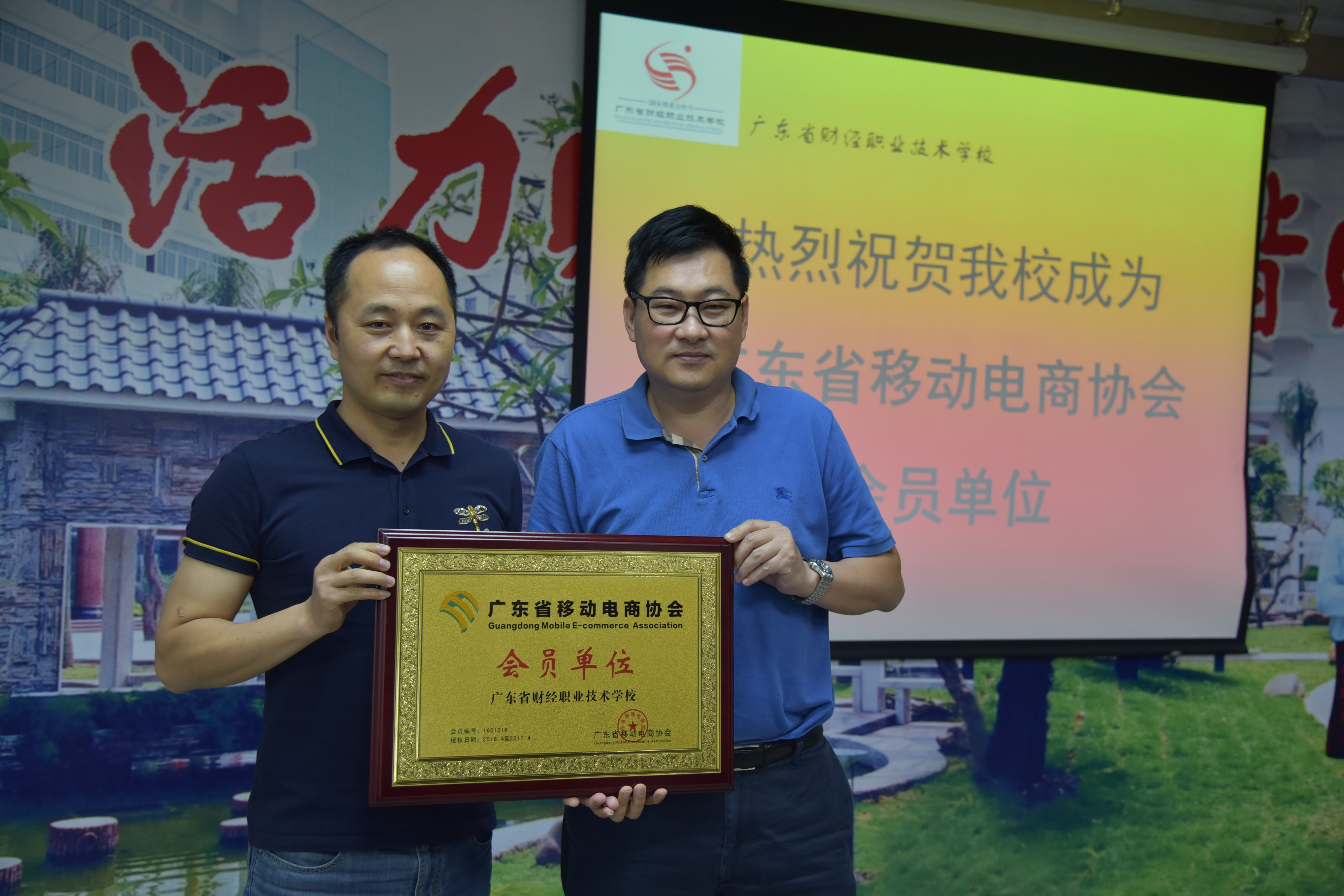 最后刘正秀会长为省财经学校授牌,省财经学校钟劲东校长接受了广东省移动电商协会会员单位牌匾。在授牌仪式结束后,教务科王丹丽科长、电子商务系黄文苑主任以及省财经学校的电子商务专业老师们带领刘会长一行参观校园,并对电子商务专业的发展进行了进一步的交流。