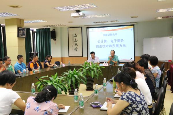 8月28日,新学期第一天。广东省电子商务技师学院以一场精彩的“云计算”讲座拉开了新学期的帷幕。学院特邀电子商务云计算顶级专家何松博士到校,开新学期“电商职教论坛”第一讲,畅谈“云计算和电子商务前沿技术”。学院班子成员、教学口主管、分管教学工作副主任、主任助理及高级讲师参加了专题讲座。