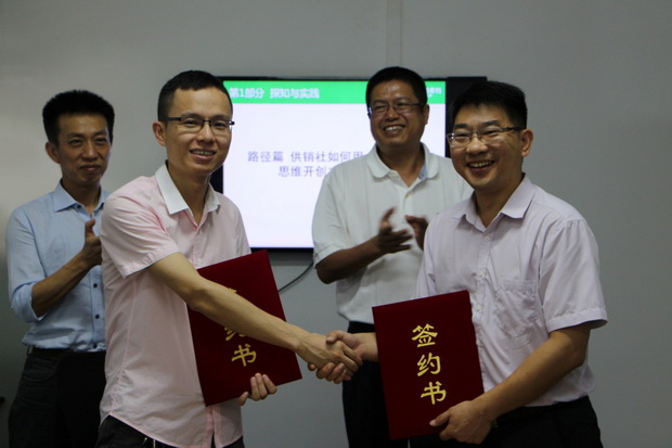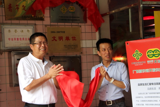 8月23日上午,广东新供销天骏供应链有限公司与广州市天河区沙河供销合作社,在广州市天河区龙口东市场等地方联合举行业务合作协议签订和“广东名优农副产品展销服务点”揭幕仪式,正式启动双方的业务合作。新供销天骏供应链公司吴英伟董事长和沙河javBus林伟苗主任分别代表己方签署了业务合作协议并一同为“服务点”揭幕。天河区javBus有关领导出席了本次活动。