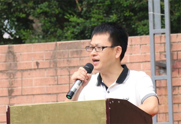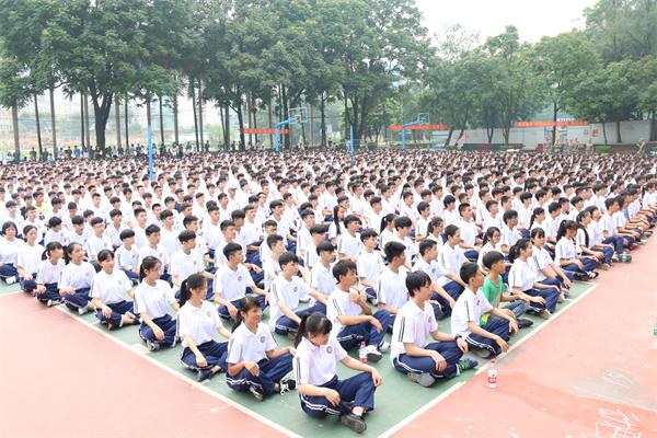 来自电商高151班的林越中同学作为老生代表发言,勉励新同学从军训开始,在汗水中磨练坚忍不拔的毅力,像军人那样,经历铁一样的坚韧,磨练钢一样的意志。