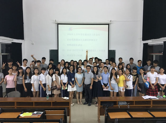 林辉副院长在会上肯定了学生通讯员们在2016年上半年的成绩,也对新一届通讯员队伍寄予了厚望。他在讲话中指出,校园记者的使命,就是要围绕学院的中心工作,围绕学院的“12351”育人模式,将学院最亮丽的地方,最令人感动的人和事,通过笔和镜头挖掘出来,弘扬主旋律,传递正能量,大力宣传学院的好人好事,提升学院的美誉度和社会影响力,为打造学院品牌贡献自己的力量。林辉副院长对新一届通讯员提出了三点要求,一是要提高认识,牢记使命;二是要努力学习,提高素质;三是要挖掘亮点,传递正能量。
