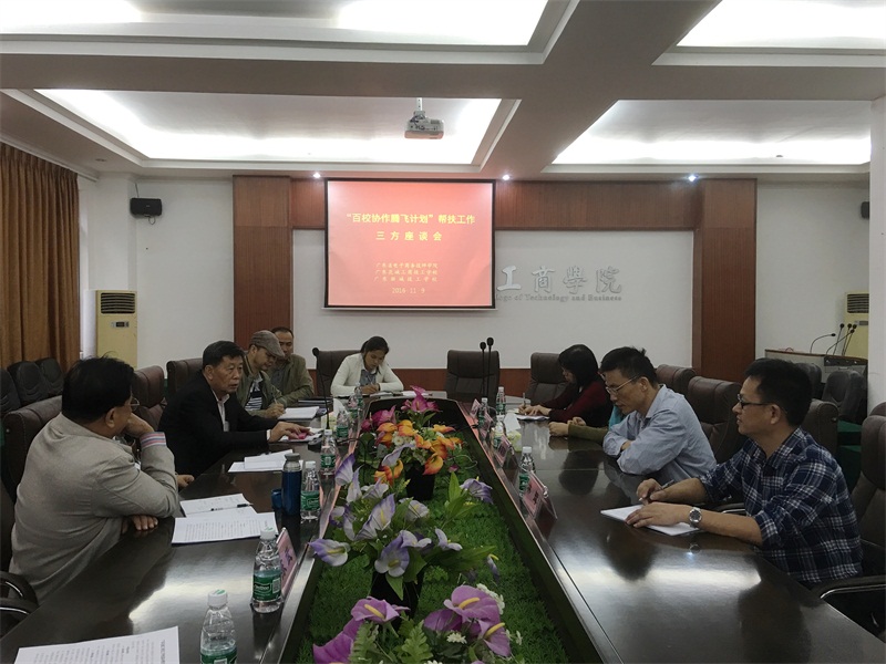根据广东省人力资源和社会保障厅《印发关于开展广东省技工院校百校协作腾飞计划的实施方案的通知》(粤人社函[2016]2813号),省电子商务技师学院结对帮扶学校为广东花城工商技工学校、广东新城技工学校。为贯彻落实文件精神,11月9日下午,省电子商务技师学院院长、党委书记潘朝阳,副院长施志君、林辉,教学管理中心主任陈玲前往广东花城工商技工学校,召开帮扶工作三方座谈会。广东花城工商技工学校顾问喻勋良、校长符坚、副校长董功成,广东新城技工学校校长韩志新、董事曾兆群、教务科副科长韦志松等有关负责人参加了座谈。