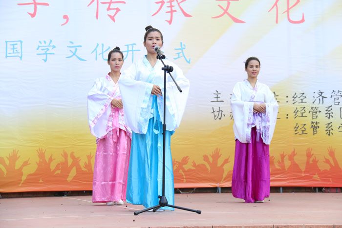 11月30日下午,由省电子商务技师学院经济管理系主办的“弘扬国学,传承文化”——第一届国学文化节开幕式在小舞台顺利举行,弘扬传统文化,践行核心价值观。经济管理系全体师生到场观看。