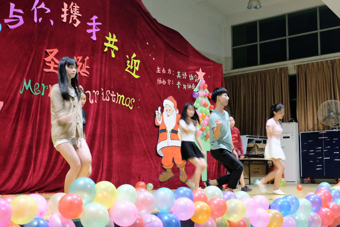 12月21日,省电子商务技师学院英语协会在羽毛球馆举办了第二届圣诞晚会。英语协会协指导老师陈玲、英语协会全体成员出席活动。