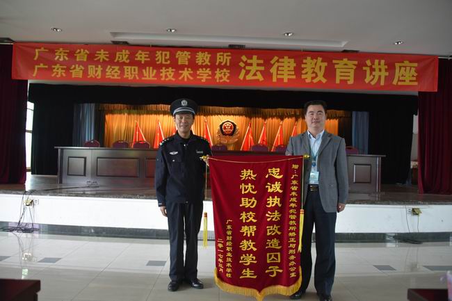 广东省未成年犯管教所领导对我校重视学生法制教育给予了高度评价。省财经学校也向管教所赠送了感谢锦旗。