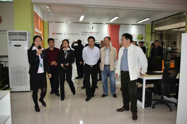 在观看学校宣传片《梦想,从这里起航》后,在钟劲东校长陪同下,来宾对学校极具特色和亮点的优势专业及教学设施进行了现场观摩和指导。依次参观了会计金融实训室、学前教育实训室、电商实训中心(运营室、沙盘室)、跨境电商实训室、e视觉创意中心、茶艺室、监控室、电商创业孵化基地、移动电商工作室。各参观点负责人分别向来宾介绍了本专业的教学管理情况及专业优势。