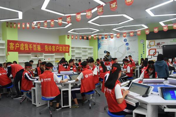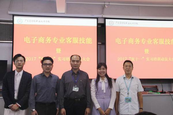 客服岗位将“双十一”战场移到校园,使电商专业学生在校园里就可以体验到真实的工作环境与工作项目,将理论知识与实践技能有机衔接。电商专业教师从10月初开始,配合和协助企业导师做好客服的岗前培训、选拔工作,并将客服岗前培训与课程融合,在校内与尊皇集团联合开展了为期一个月的客服特训营,237名16级电商专业学生均参与到本次特训中。