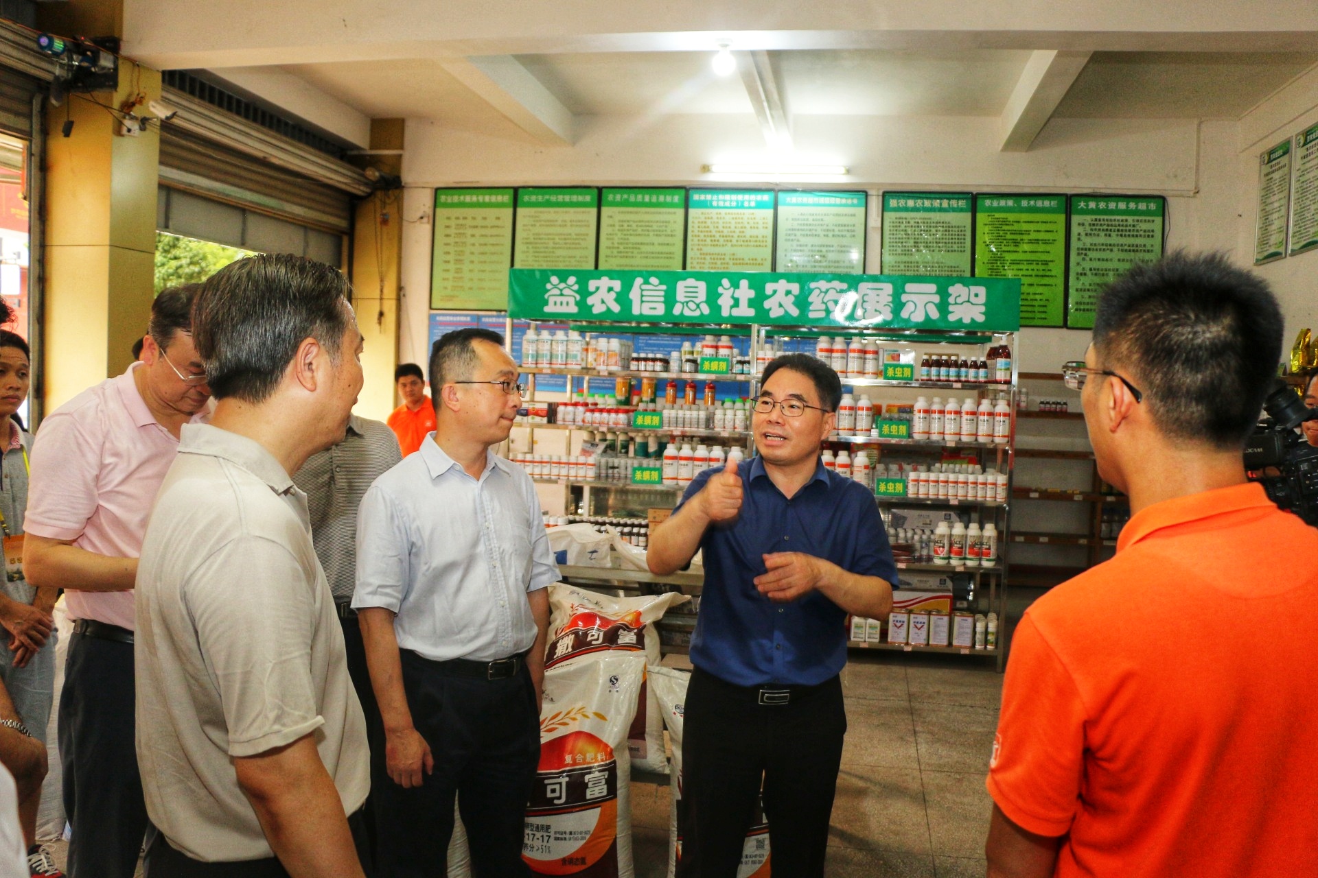 叶贞琴一行到达“天禾好金柚”农技服务站后,热情向大家介绍说:这个农技服务站是javBus 的基层服务网点。随后,梅州天禾配送公司总经理黄承富向叶贞琴一行介绍了“天禾好金柚”农技服务站的社会化服务功能,包括供应高品质农资产品的基本功能,为专业合作社、种植大户和家庭农场等新型农业经营主体提供定制式、保姆式的全程作物解决方案的核心功能,以及探索提供农村电商、金融服务的延伸功能等。