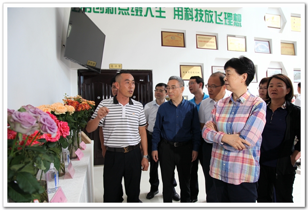 王侠一行在通海县调研通海县云秀玫瑰专业合作社