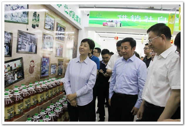 在哈尔滨市国鑫供销生鲜超市调研时,王侠对超市开展的产销对接、平价农产品销售、设立扶贫代销专柜等,给予充分肯定。王侠强调,流通是供销合作社的老本行,供销合作社要发挥传统优势,推进网上网下融合发展,加快把农产品流通做起来。在了解到省社倍丰公司生产的“龙稻”大米、惠丰乳品公司生产的酸奶在超市销售并且很受居民欢迎时,王侠指出,黑龙江特色农产品种类多、品质优,要加快打造一批叫得响、过得硬的农产品品牌,提高农产品附加值,让农民分享更多增值收益。
